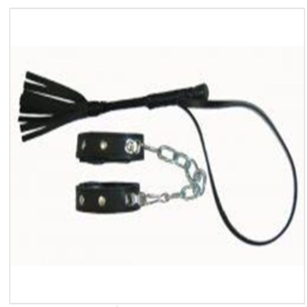 Kit escrava preto com bracelete e chibatas de tiras de 11 cm.